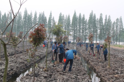 “今天是我們的黨員活動日,公司組織全體黨員集體參加了這次的義務植樹行動?!闭憬p箭橡膠股份有限公司行政科科長陸新會表示,“來自6個支部的88名黨員在村里認建的片林區和公司附近的雙箭生態公園里進行植樹護綠活動。”