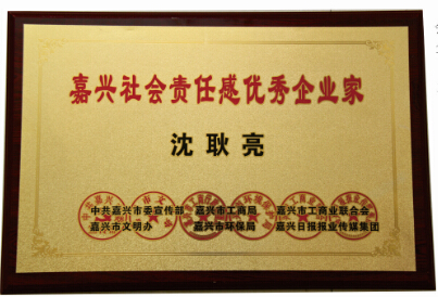 5月28日,在以“責(zé)任引領(lǐng)未來(lái) 共建誠(chéng)信嘉興”為主題的嘉興市首屆“最具社會(huì)責(zé)任感企業(yè)(家)頒獎(jiǎng)典禮上,一年多來(lái),通過(guò)大眾網(wǎng)絡(luò)、報(bào)紙投票和組委會(huì)評(píng)議,認(rèn)真篩選,層層選拔,最終誕生的嘉興最具社會(huì)責(zé)任感的企業(yè)和企業(yè)家以及優(yōu)秀企業(yè)和企業(yè)家各10名受到了表彰。我公司董事長(zhǎng)沈耿亮也獲此殊榮。